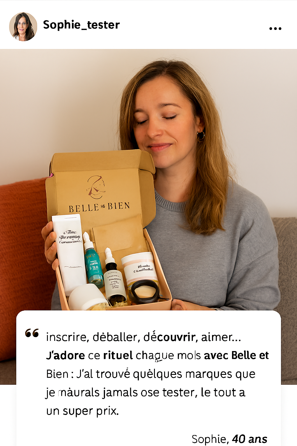 et recevez 3 articles de beauté + 1 accessoire bien-être dans chaque box pour vous faire découvrir l’univers de la beauté et du bien-être à travers des marques innovantes et des produits soigneusement sélectionnés rien que pour vous.